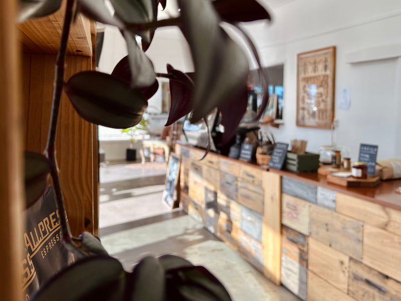 Serving Allpress organic coffee with wholefood sweet & savoury snacks.Honey retail, with local organic selections.